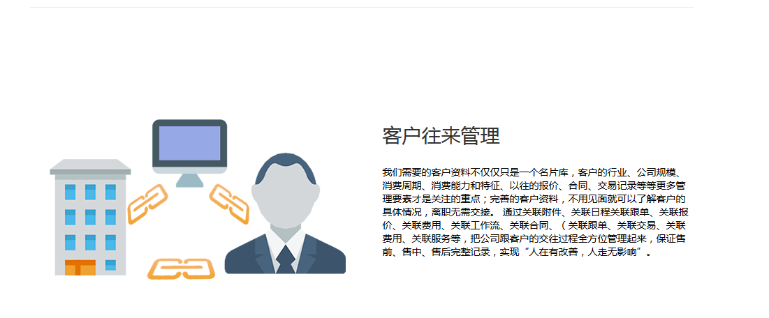 任我行协同CRM主张通过新型互联网技术与CRM的结合,帮助企业连接客户、合作伙伴和产品。通过全连接渠道的打通,CRM能够将企业后端供应链、前端需求链与外部的合作伙伴、客户以及产品设备连接起来,帮助企业转型为真正以客户为中心的运营组织。