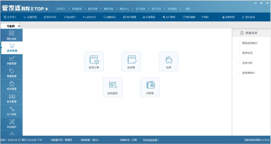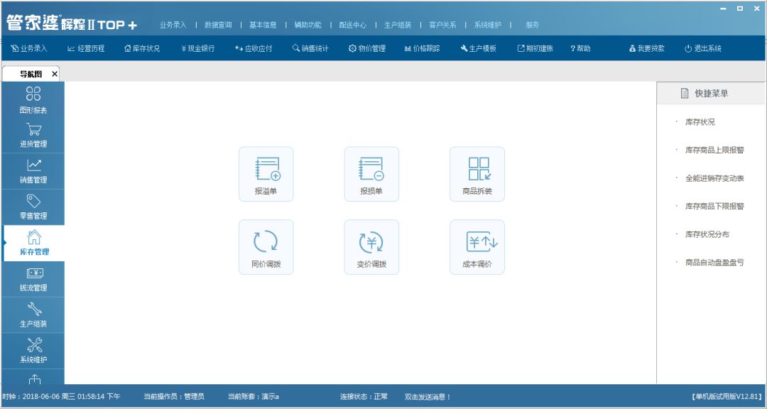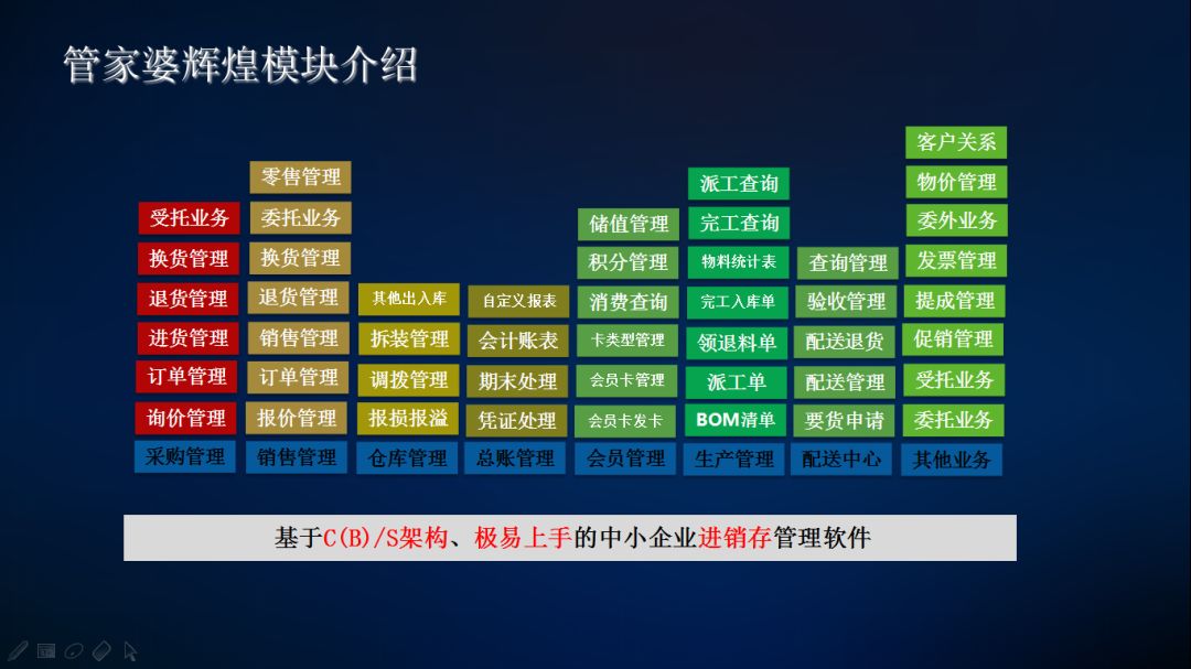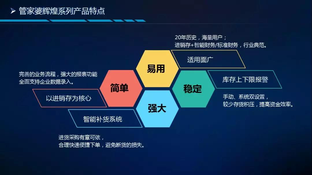 管家婆软件辉煌系列是集商品进销存和财务管理一体化的管理软件:即将物流与钱流、业务数据与财务数据自动集成,实现商品库存往来账项、资金流动、费用收支及利润浑然联结。它超越了财务的门槛,用通俗易懂的思路代替了会计专业概念,操作简明、流畅。即使不懂会计,也能在短期内学会使用,是面向中小企业全面管理软件的典范。