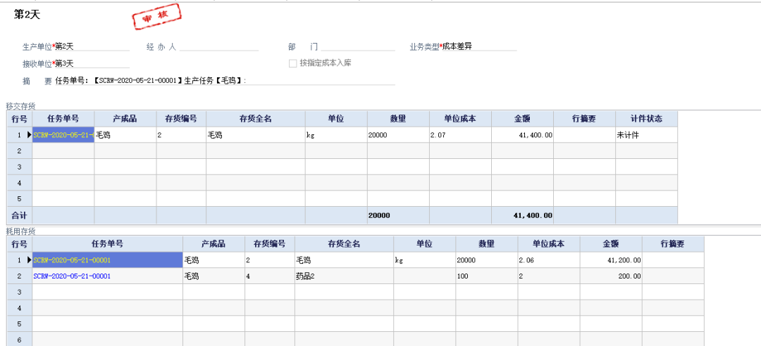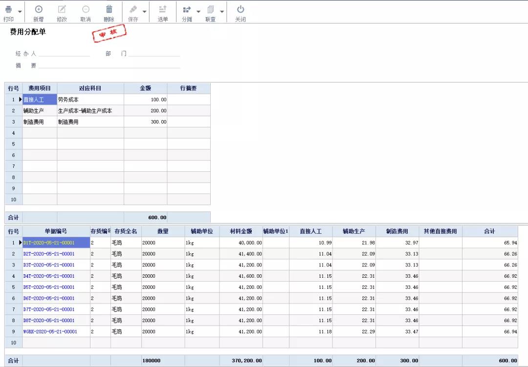 费用分摊:养殖业每天发生一些其他费用,例如水电、人工等等费用,这些费用可以在月末的时候进行记录,并分摊到我们养殖完成的成品中去,也可以分摊到每天的单据中去,形成完整的每日成本。