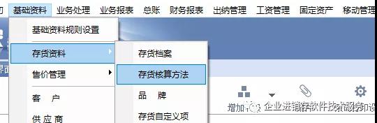 5、核算方法:系统默认为原材料和库存商品,也可以增加,如半成品等核算。具体配置位置在下图中位置