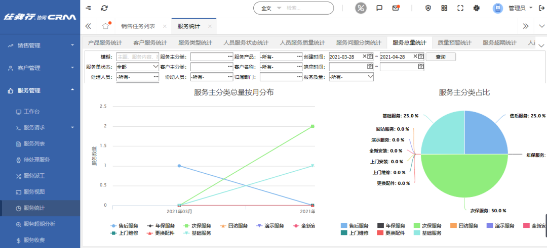 服务的生产与产出是同步进行的,而不是只有当服务完成的时候,客户才能感受到服务的好坏。所以在服务阶段的管理上可以增加管理规范,任我行协同CRM帮助净水器企业规范化管控服务人员,以此来控制服务质量;优化服务流程,避免出现派工后无人响应,接单后忘记处理,没有回访环节,或回访不及时等问题;清晰分析服务产生的数据,服务人员处理服务单数量的多少,服务质量的好坏,服务费用的高,系统都能全面透彻的分析,为服务团队的管理以及未来的决策提供有力依据。