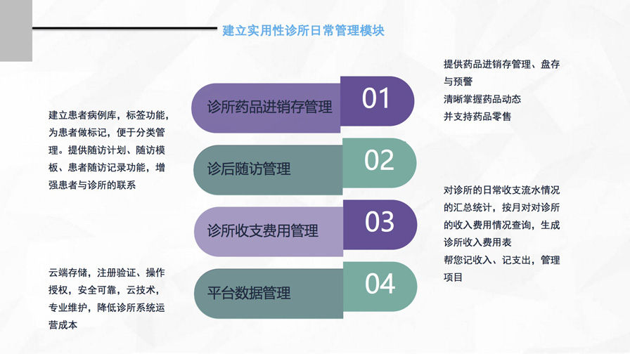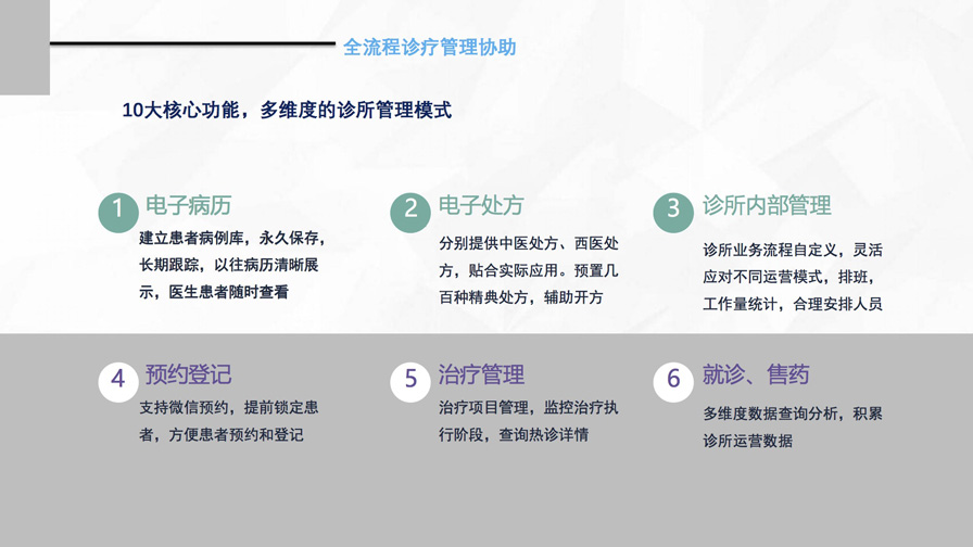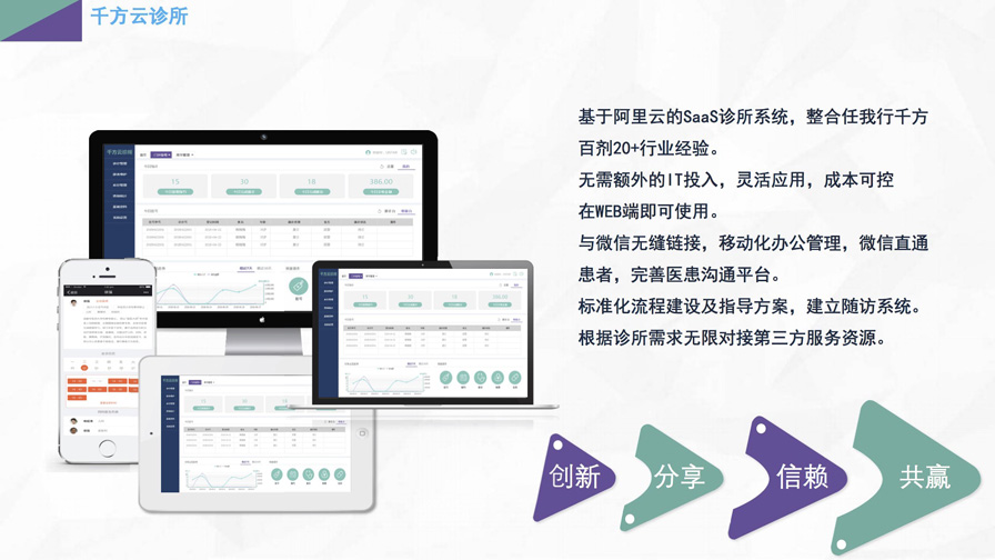 软件介绍相关软件相关文章千方百剂诊所管理系统是针对中国各级城市、乡镇普遍存在的私人个体诊所、社区医院、乡镇卫生室等小型医疗机构量身定做的,集药品进销存、财务统计、电子病历、诊疗服务为一体的专业管理系统。包括进销存管理、往来管理、门诊管理、会员、促销管理、财务管理、效期管理。帮助小型医疗机构实现病员管理、物流、资金流、信息流的一体化管理,全面提升的运营效率。采用云存储服务,数据永不丢失,安全可靠,只需浏览器访问登陆网站即可使用。 诊断流程图: 挂号功能: 医生诊断: 病历管理: 医生病人销售汇总表: 南通管家婆软件有限公司是管家婆软件五星级总代理及授权营销服务中心,是管家婆软件全国首批授权服务中心之一,拥有多年管家婆软件实施,服务团队。15年来为南通地区近万家企业进行了信息化改造及管理系统的导入,为用户提供优质的本地化服务随着用户的业务拓展和管理升级,不用担心功能不够用,我们支持数据无缝升级到管家婆辉煌所有系列产品,让用户没有后顾之忧。 南通管家婆软件有限公司主营产品线覆盖管家婆进销存、财务软件、 生产管理软件、ERP软件,CRM、OA、电子商务和移动互联产品、软件个性数据图表定制,数据分析,数据大屏,智慧校园,智能客服平台为客户提供信息化建设一站式解决方案,协助企业多维度管理,经营需求。 南通管家婆软件有限公司24小时服务咨询热线:13912878044。 上一篇: 管家婆辉煌五金建材版——五金建材批发零售行业一体化软件 下一篇: 千方百剂农兽药管理软件——农资商贸企业信息化解决方案