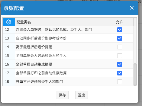 | 18 | 开单不允许修改经手人和部门: | 若启用此项,则做单时不允许修改经手人和部门。(管理员不受此配置项控制)