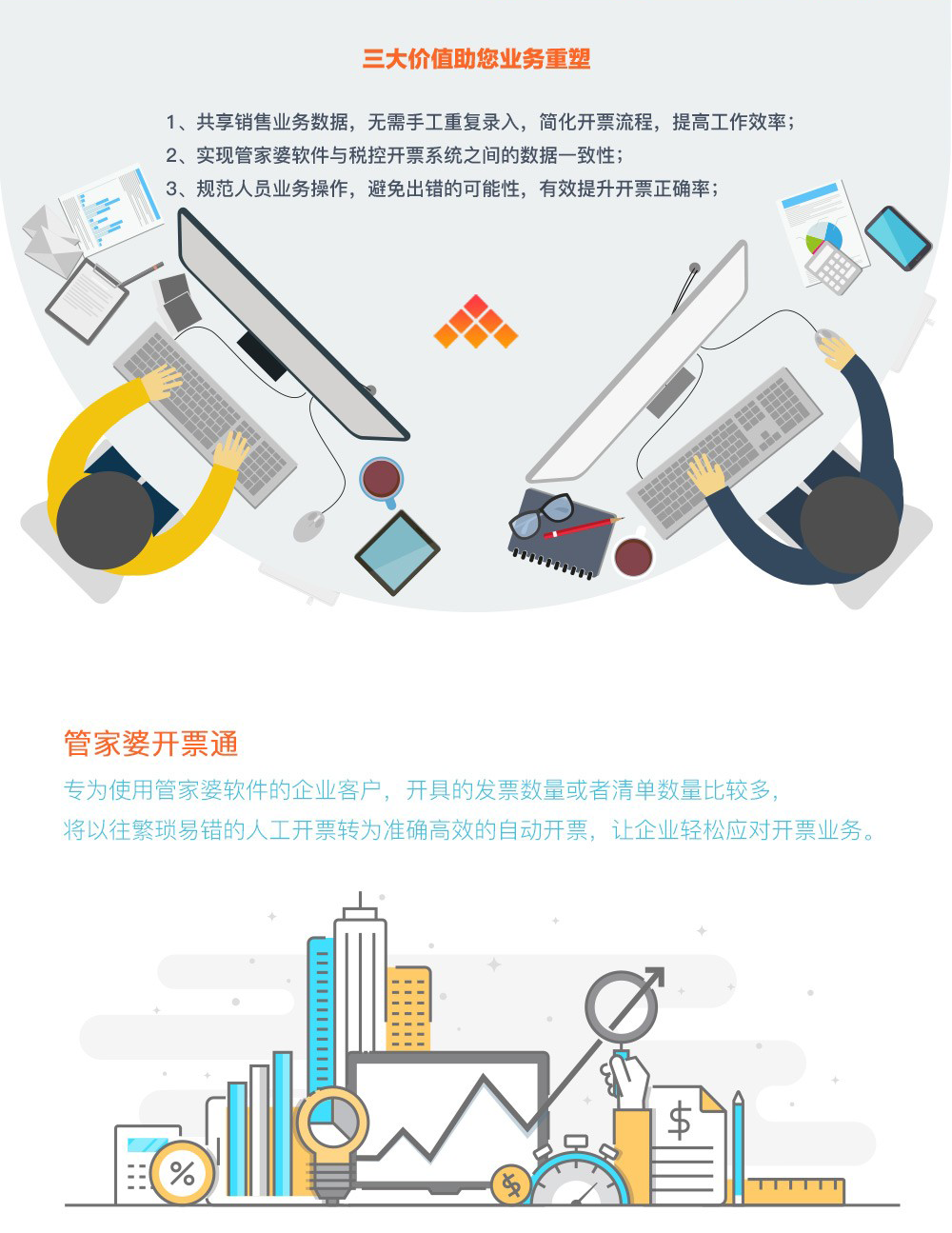 管家婆开票通:无缝对接管家婆软件和金税/百旺税控开票系统,准确、快速、高效开具发票,打印销货清单,让企业开票业务处理更轻松!
