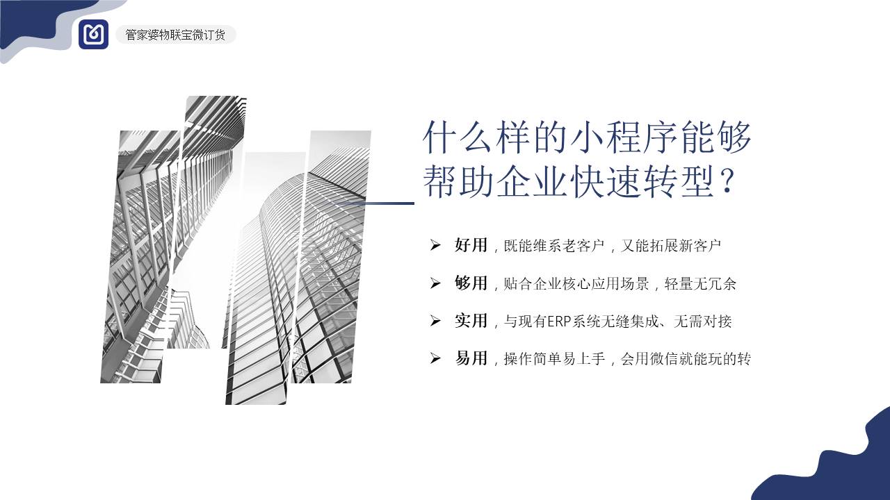 管家婆微订货,一款更适用于生产型企业的小程序订货系统,不仅符合当下企业移动管理的需求,为客户带来更好的订货体验,也满足企业多样化的营销方式,帮助企业留住优质客源。