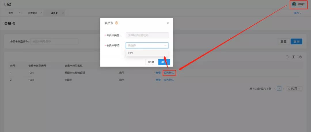 门店视角查看会员卡时默认显示总部设置的默认会员卡,门店可独立设置自己的默认会员卡,设置门店会员卡只影响当前门店,不影响总部和其他门店的设置。