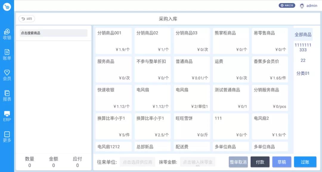 优化单据创建模式,取消过多自由选项,由管家婆易零售中ERP门店配置的所属仓库对应入库仓库,自动回写默认经手人,门店只可对该门店对应的仓库进行采购入库、盘点,创建时入库单仅选择往来单位,盘点单直接选择商品进行盘点。