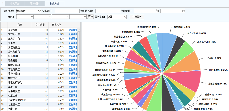 ① 构成分析:可以根据客户来源、行业、地区、销售等字段进行分析,为后续战略规划提供有效依据;