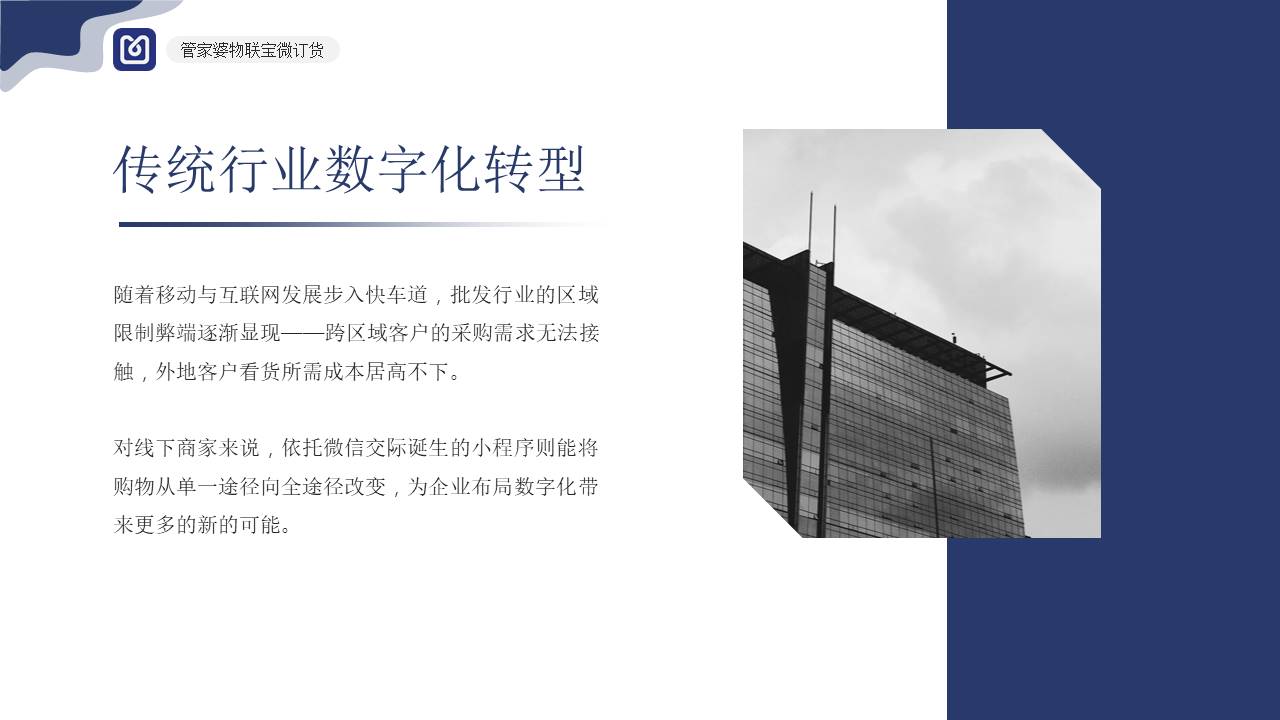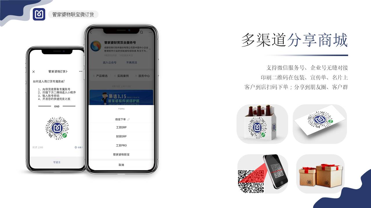 管家婆微订货围绕小程序打造商家线下私域流量,将线上线下制裂的场景进行全链路交融,低成本高效率地实现小微批发商家变革,让商家快速拥抱新技术连接客户。